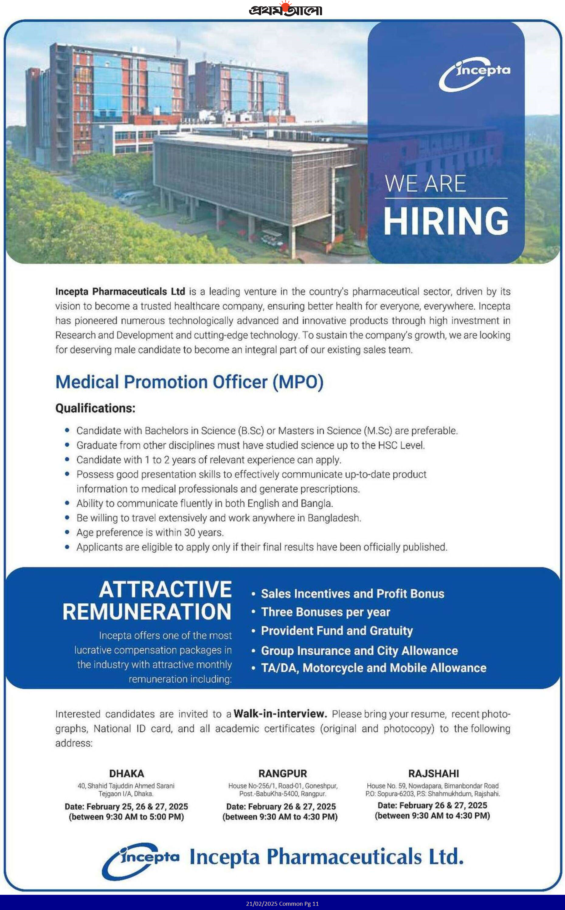 Incepta Pharmaceuticals Job Circular 2025